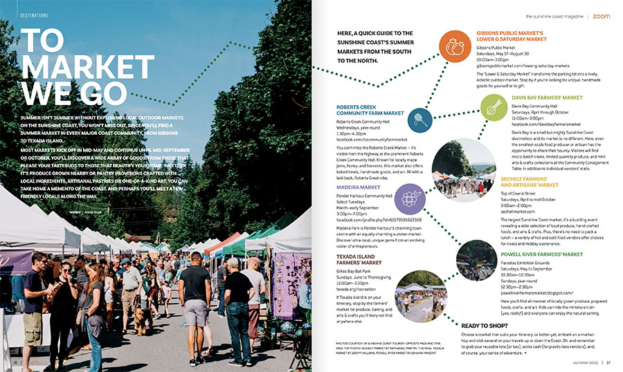 Summer isn’t summer without exploring local outdoor markets. On the Sunshine Coast, you won’t miss out, since you’ll find a summer market in every major Coast community, from Gibsons to Texada Island.