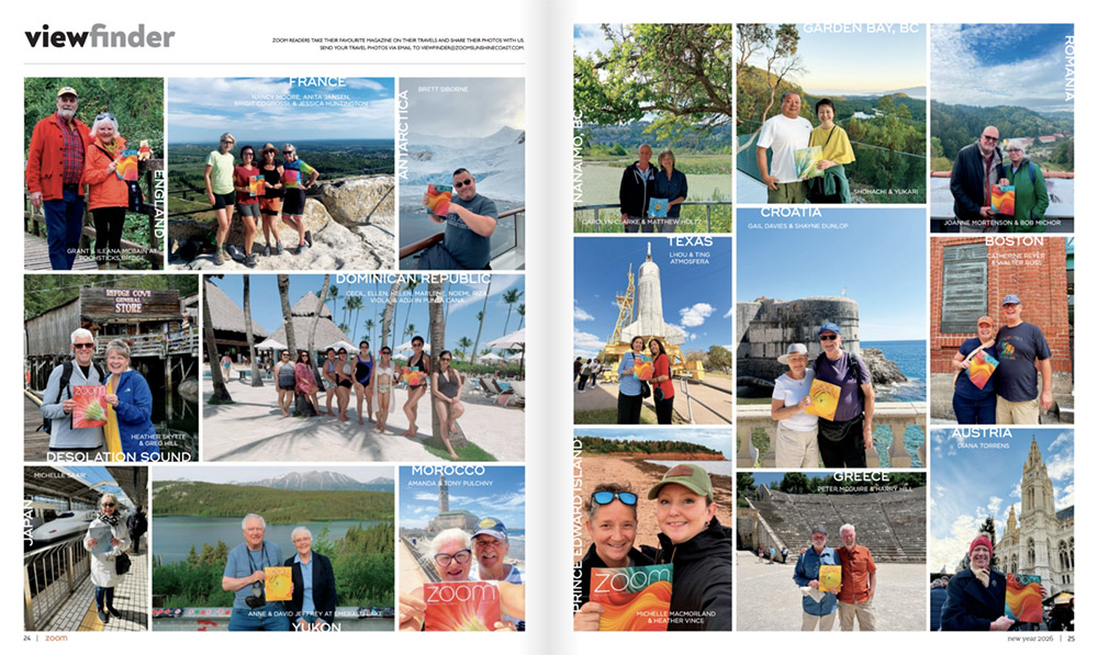 Viewfinder is a favourite section of ZOOM Magazine, where locals share snapshots from their travels near and far. From adventures across Canada to journeys abroad, these photos inspire fellow readers—and sometimes even help plan the next trip. It’s a fun way to capture travel memories and see your experiences featured in a local magazine.